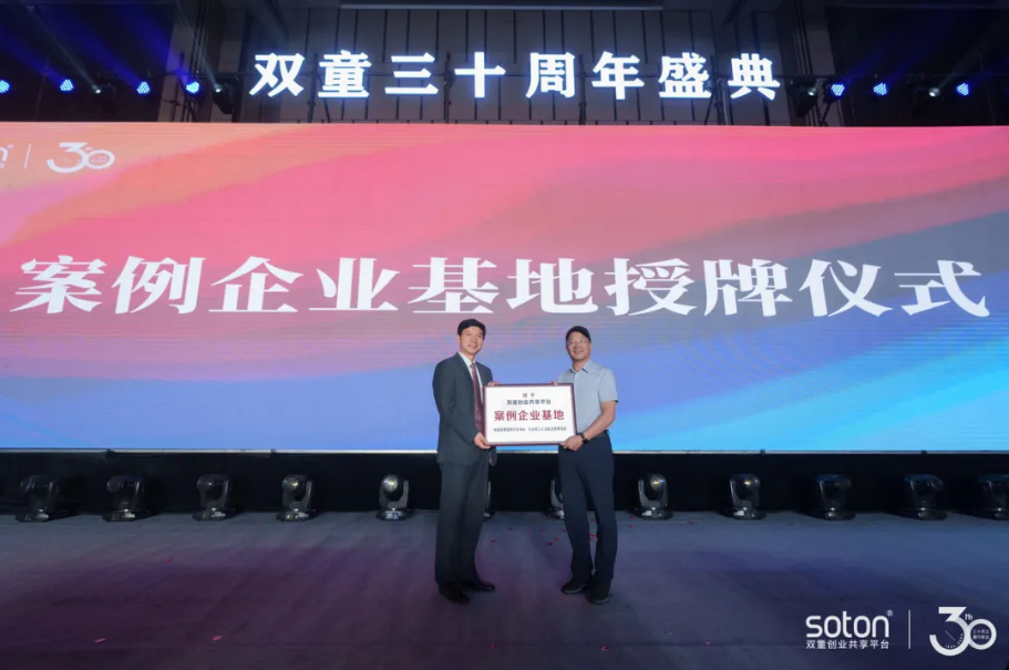 而在“双童”30周年庆典之际,中国管理案例共享中心主任朱方伟亲临现场,为企业授予“案例企业基地”称号并致辞。