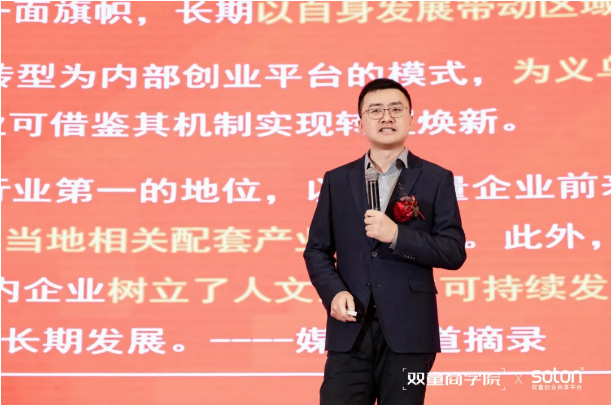 与此同时,双童正式宣布商学院进行品牌升级,由“双童商学院”更名为“双童商学”。这一字之变,意味着:“双童商学院”从义乌工商职业技术学院的二级分院升级为一个更开放、更独立的教育品牌,从提供一套课程体系,升级为构筑一个共生共长的商业智慧生态系统。