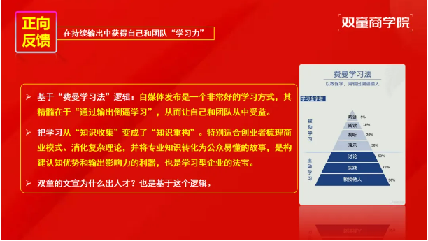 IP打造的过程,也是团队学习力提升的过程。基于费曼学习法,持续的内容输出能倒逼输入,让创业者与团队在梳理商业模式、消化专业知识、转化公众语言的过程中,实现“知识重构”而非单纯的“知识收集”。双童文宣团队的成长,正是这一逻辑的生动体现。