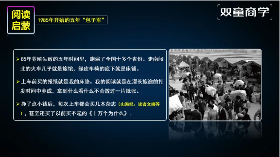 他分享了早期自己80年代做“包子军”时养成碎片化阅读习惯的故事。在艰苦求生的恶劣环境下,书籍成了生活夹缝中唯一的甜。不再为生存发愁后,杂志书籍成了他行囊里的必备品,碎片化的阅读在不知不觉中为他贫瘠的知识体系埋下了种子。