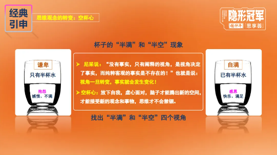 科学革命的起点,是承认人类的无知。而创新思维的开启,首要前提是思维观念的转变,拥有“空杯心”。面对事物,人们常陷入“半满”与“半空”的认知局限,而“空杯心”的核心的是放下自我固有认知与偏见,以虚心的态度面对新事物,唯有让大脑腾出空间,才能接纳新观念、突破思维禁锢。