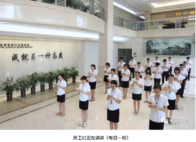 首先,就是晨读环节。“双童”所有员工在上班之前都会在统一时间诵读“双童”的企业文化丛书——《每日一则》。