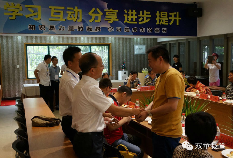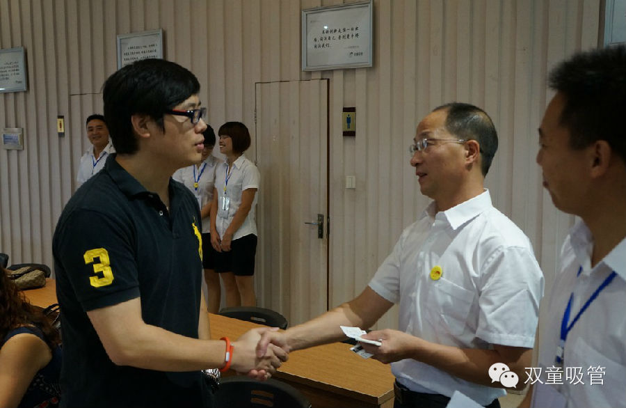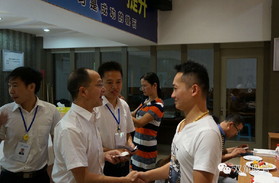 庆典开始前的会场,楼总再次与参与庆典的客户,一一握手致敬,并互相交换名片。参与庆典的客户有来自广州的,来自武汉的,来自昆明的,来自湖南的、来自湖北的、来自天山脚下乌鲁木齐的……感谢每一位来自天南地北的珍贵嘉宾大热天放弃工作来为双童鼓掌呐喊。20年风雨历程,感谢你一路相伴,感谢每一位关注我们的朋友。