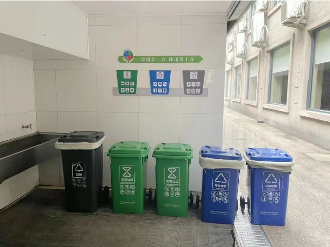 每次用完餐后,员工们将食物残渣和汤汁倒到泔水桶,餐巾纸丢进专用垃圾桶,饮料罐放入旁边的塑料筐,碗统一放到蓝色筐,筷子放进白色的小塑料筐。最后,把托盘用自来水冲洗一遍,按要求放到水池边的指定处。在这里,自觉进行垃圾分类已成为每一名员工的日常习惯。