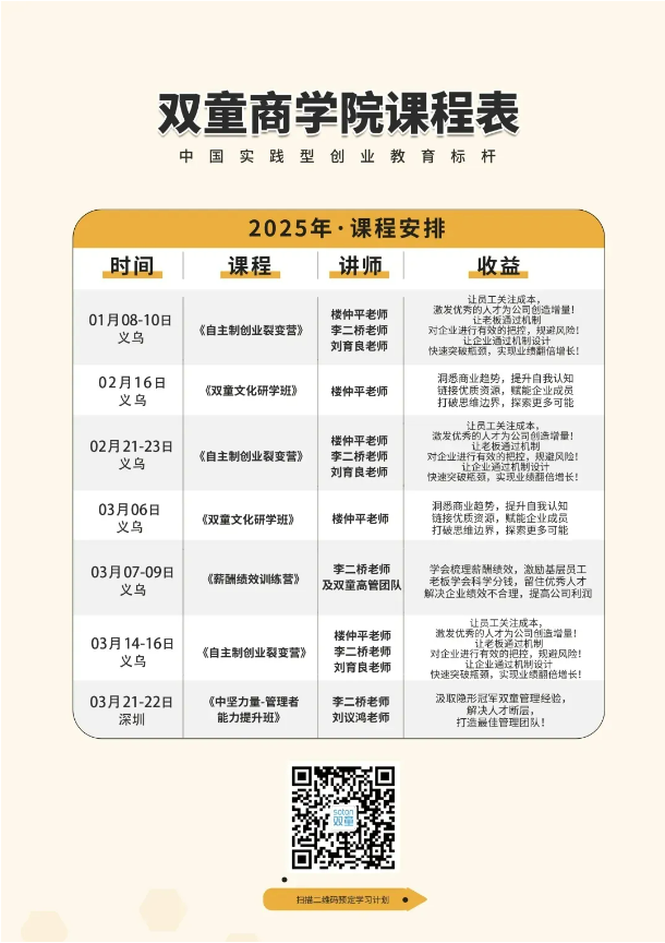 46年的创业经验和持续近30年对管理学、经济学、哲学等众多学科的学习,帮他形成形并积累了深厚的哲科思想、管理认知和实战经验,让他从一个挑货郎担的草根创业者成长为同时具备实战型、认知型、成长型特质的创业导师。他不仅在象牙塔里,也在自己创办的“工厂里的商学院”的讲台上,向更多中小企业创业者传递自己的商业智慧!