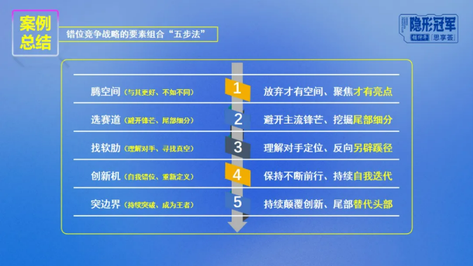 而安踏在面对耐克、阿迪这样的强敌竞争时,能结合自己的擅长,做出明确取舍,最终形成自己核心的“差异化竞争壁垒”,成为“细分王者”,甚至能反向在主流项目上逐渐挖掘,突破巨头的行业垄断,也更加证明了错位竞争就是隐形冠军的“不二法宝”。