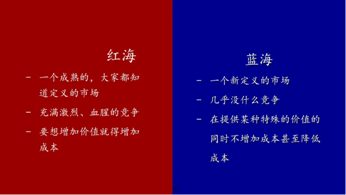 最后,在协调价值与成本定位之间,邓地博士还为同学们提出了一个新的可能——蓝海战略。企业可以通过打破隐含假设、改造价值链,开辟出一个新的“蓝海”,但是在一条新赛道拥有先发优势不等于可以长期垄断它。