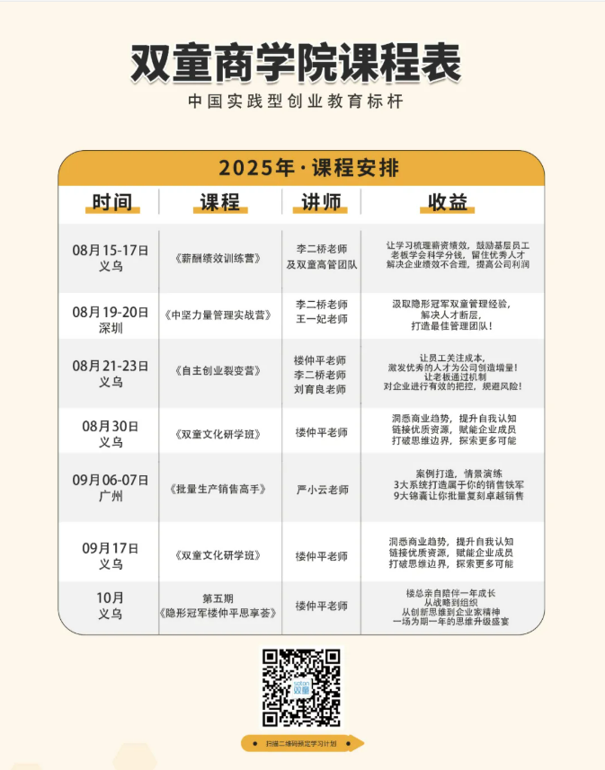●【双童商学院近期课表】《自主创业裂变营》备受期待!超1000位学员将汇聚双童共同学习!