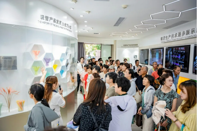在专业讲解员的陪同下,游学团参观了中国吸管博物馆。这个独具匠心的展馆不仅系统展示了吸管行业的发展历程,更陈列着各式创意十足、色彩斑斓的吸管展品,令在场游学团成员连连称奇。