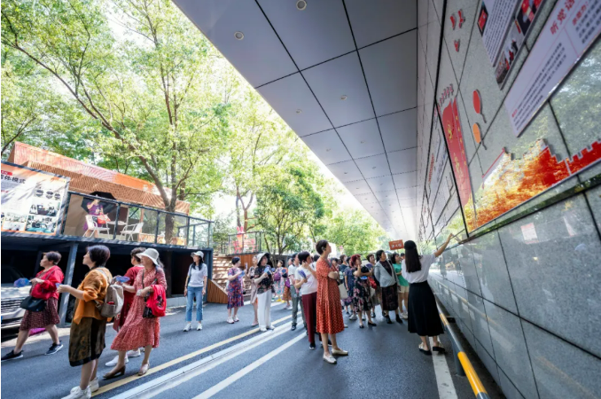 走过百米文化长廊,游学团通过丰富的图文资料,见证了双童不同发展阶段的成长轨迹。在讲解员的详细介绍下,大家深入了解了双童30年来顺应时代变革的转型历程及其具体实施路径。随后,考察团参观了正在建设中的森林长廊项目,对这一创新设计赞不绝口,纷纷表现出浓厚的兴趣和赞赏之情。