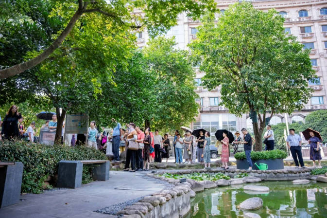 走出建筑大楼,讲解员又带领大家详细参观了双童建于20多年前的“节能降耗系统”,包含了雨水收集回用系统、废水处理回用系统、设备余热采集循环系统等,以及使用性与观赏性完美统一的“双童湖”和“一号树”,微风拂过,带来阵阵荷香。