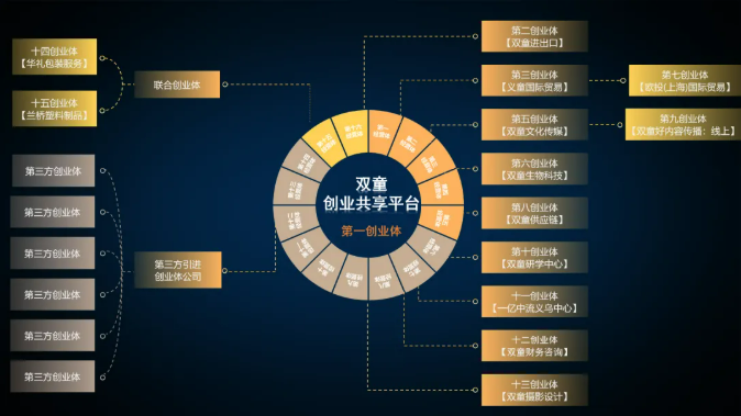 目前,双童创业平台已成功孵化出了16家创业体和26个经营体,从2018年到2023年,5年时间,更是再造了3.5个双童,成功反哺了主业经营!形成了以吸管制造业为基础,以国际贸易和创业教育两大板块为融合的新型产业模式,完成了从“一根吸管”到“创业平台”的转变!