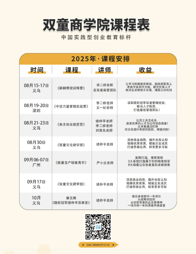如果你也对“双童”充满好奇,也想赋能团队共同成长,欢迎走进8月30日【双童文化研学班】,与上百位优秀的创业者一起学习!少量名额,欢迎咨询锁定!