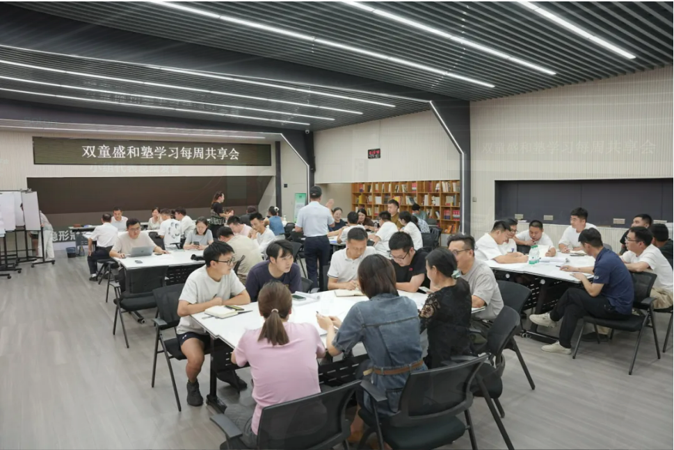 楼总则推荐大家,通过阅读电子版精华内容,随时利用碎片化时间进行总结归纳,语音输入感言也可以让表达更加真情实感。作为双童成长力最强的人,总经理李二桥也在现场分享了自己持续多年的学习心得。第一点就是坚持,对学习这件事保持热情,第二点是通过学习重点纲要,精读探讨。他鼓舞大家互相督促、互相鼓励,让整个团队更加凝聚,共同进步。
