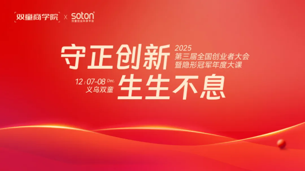 与此同时,双童正式宣布商学院进行品牌升级,由“双童商学院”更名为“双童商学”。这一字之变,意味着:“双童商学院”从义乌工商职业技术学院的二级分院升级为一个更开放、更独立的教育品牌,从提供一套课程体系,升级为构筑一个共生共长的商业智慧生态系统。