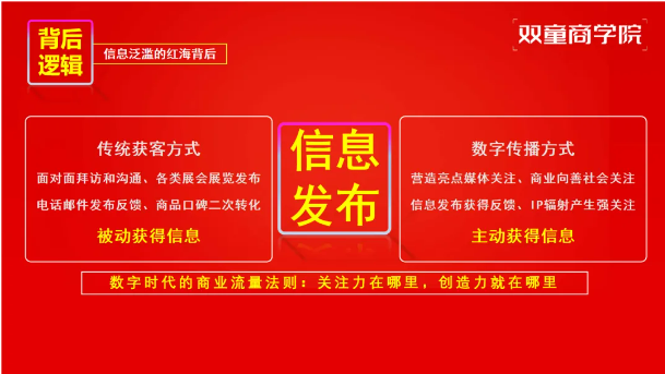创业者IP的崛起,源于数字时代不可逆转的商业逻辑变革。后工业时代的商品过剩必然催生信息泛滥,各方为获取信息对称而持续释放内容,导致信息冗余与挤压,“好酒也怕巷子深”成为普遍困境。主动释放信息、争夺关注力,成为内卷时代的生存法则。