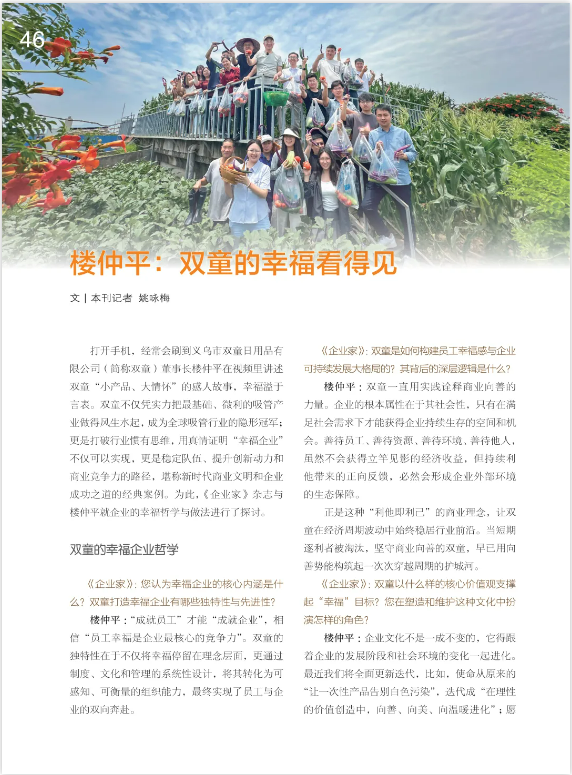 《企业家》:双童是如何构建员工幸福感与企业可持续发展大格局的?其背后的深层逻辑是什么?
