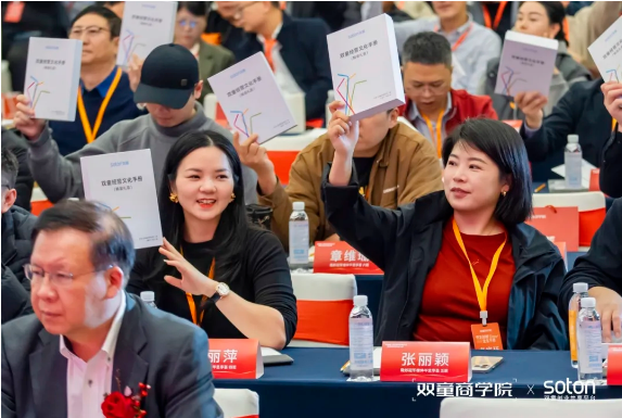 仪式伊始,双童商学总经理周上老师阐述了经营哲学对于企业的意义,全场学员共同展示了刚刚收到的《双童经营哲学》礼盒,象征着双童31年实践与思考的结晶正式面向所有同行者共享!