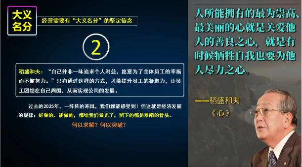 楼仲平在分享伊始,便向在座塾生们提出双童“穿越周期”的三个基点:磨炼意志、增强韧性;激发善意、滋养经营;全员营销、共同富裕。这三者相互支撑,形成了他独特的经营哲学。