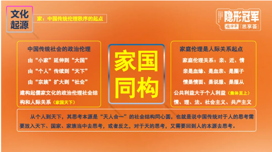 03 社会关系:儒家文化影响下形成人伦道德和人际关系。儒家“家国天下”构建血缘熟人文化,曾维系社会稳定,却因与现代契约精神冲突,成为近代转型阻力。