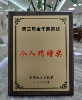 “第三届金华慈善奖个人捐赠奖”证书