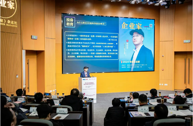 “2025企业管理年会暨国发院商学共创日”活动特邀楼仲平出席并在活动中受颁了“2024年度企业家”荣誉证书及奖杯;同时,他还作为企业家代表进行了从《“吸管大王”到“企业教练”》主题分享,讲述自己的创业历程与不断破界、转换身份的故事。
